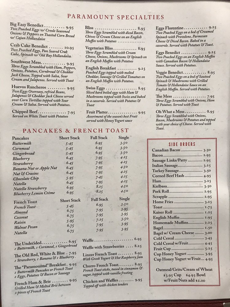 Paramount Diner, located in Mansqun, NJ, is a hidden gem offering delicious breakfast and brunch options in a casual and cozy setting. The menu boasts many vegetarian choices, like the famous lobster omelette loaded with fresh Maine Lobster, as praised by customer Albert F. The friendly owners create a welcoming atmosphere, as highlighted in Meg G. and James D.'s reviews. Cindy M. raved about the stuffed French toast, causing pure euphoria. Paramount Diner is not just a place to eat, but a community hub where birthday parties, like Jim D.'s, turn into hoots of fun. This diner's outstanding service, reasonable prices, and nostalgic charm make it a must-visit destination in the Point Pleasant Beach area. Visit Paramount Diner for a memorable dining experience that will leave you coming back for more.